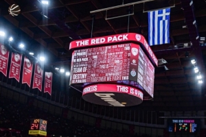 欧洲豪门奥林匹亚科斯主场大屏幕加赞助商名 三年就要500万欧元