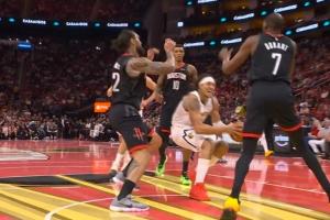 约基奇面对包夹祭出不看人潇洒妙传 可惜布鲁斯·布朗三分没进